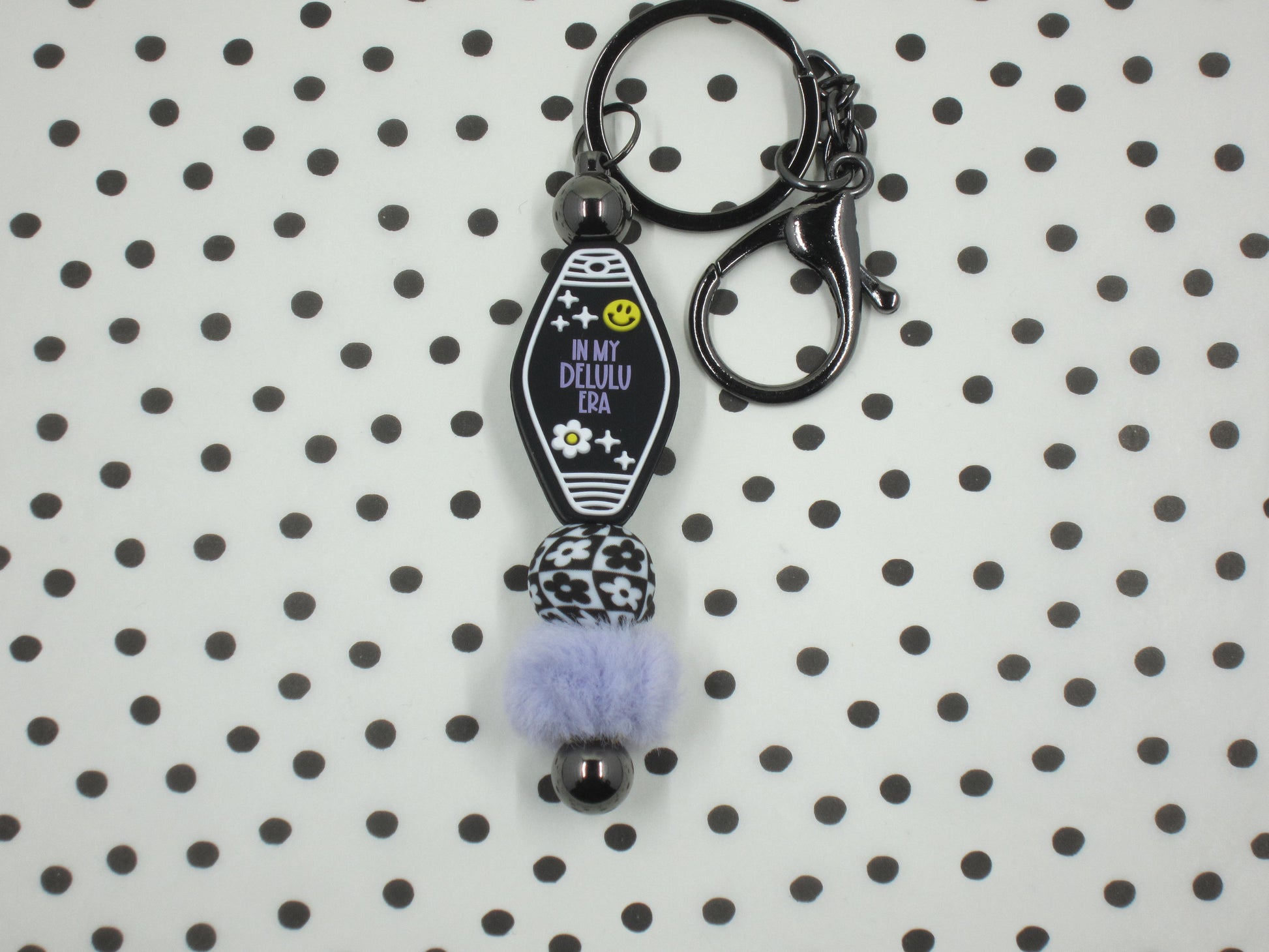 silicone beaded bar keychain with faux fur accent bead