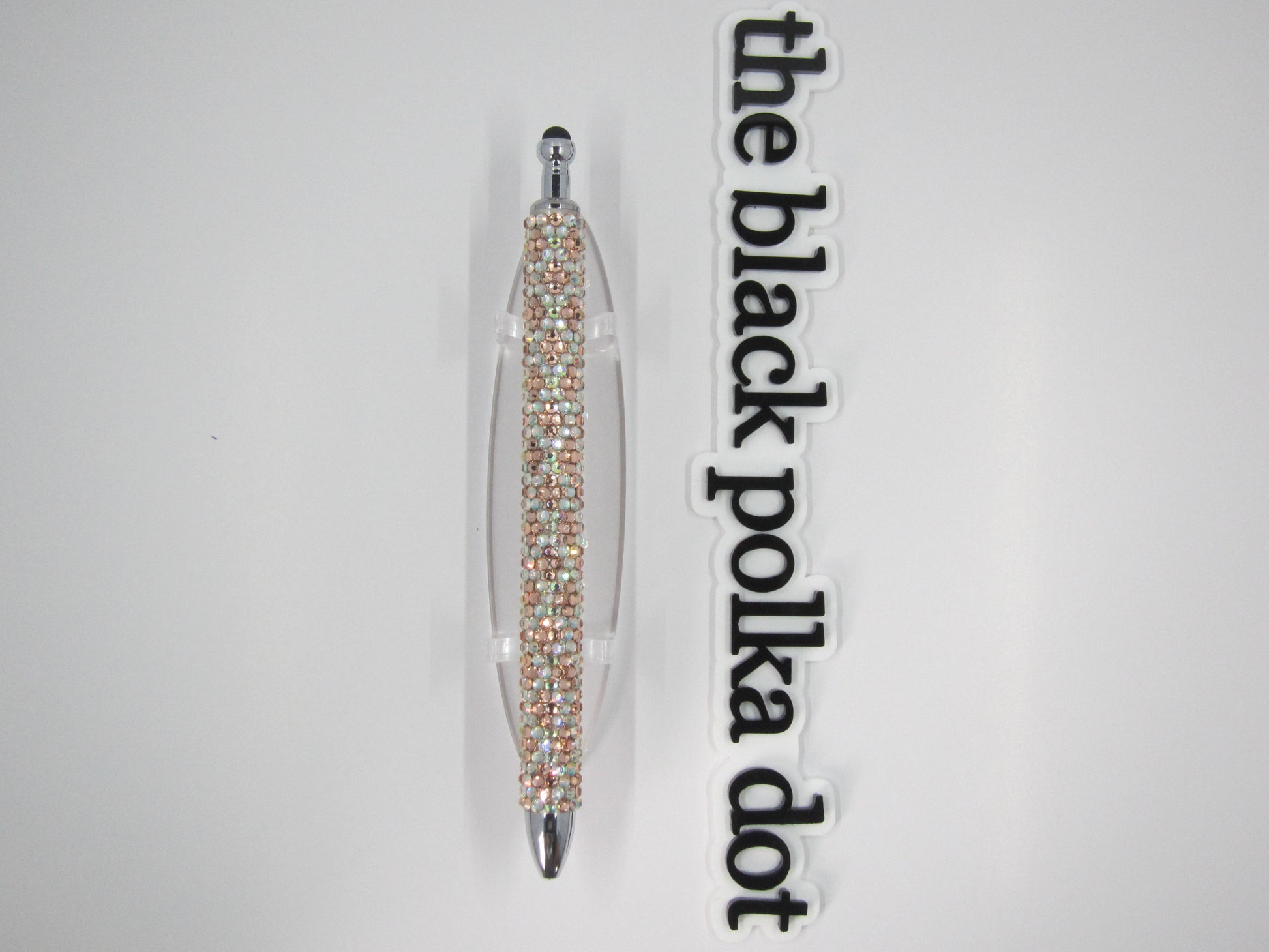 hand placed glass rhinestone black gel ink pen/stylus